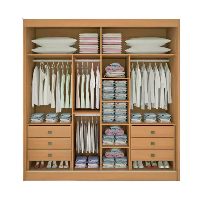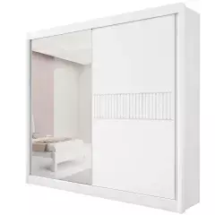 Sua estrutura em MDF de alta qualidade assegura resistência e durabilidade, enquanto o interior bem distribuído conta com prateleiras, cabideiros e gavetas amplas que permitem armazenar roupas, calçados e acessórios de forma prática.