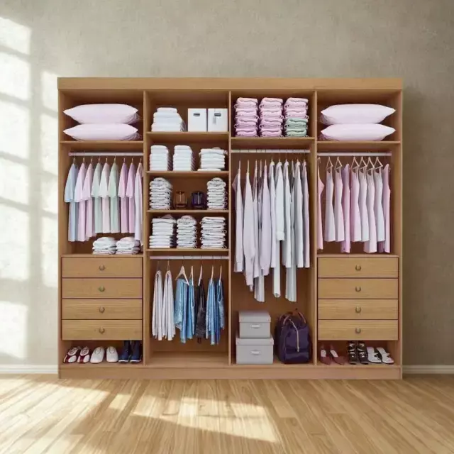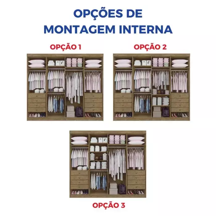 Sua estrutura em MDF de alta resistência garante durabilidade e estabilidade, enquanto o interior espaçoso oferece diversas prateleiras, cabideiros e gavetas que facilitam a organização das roupas e acessórios do dia a dia.