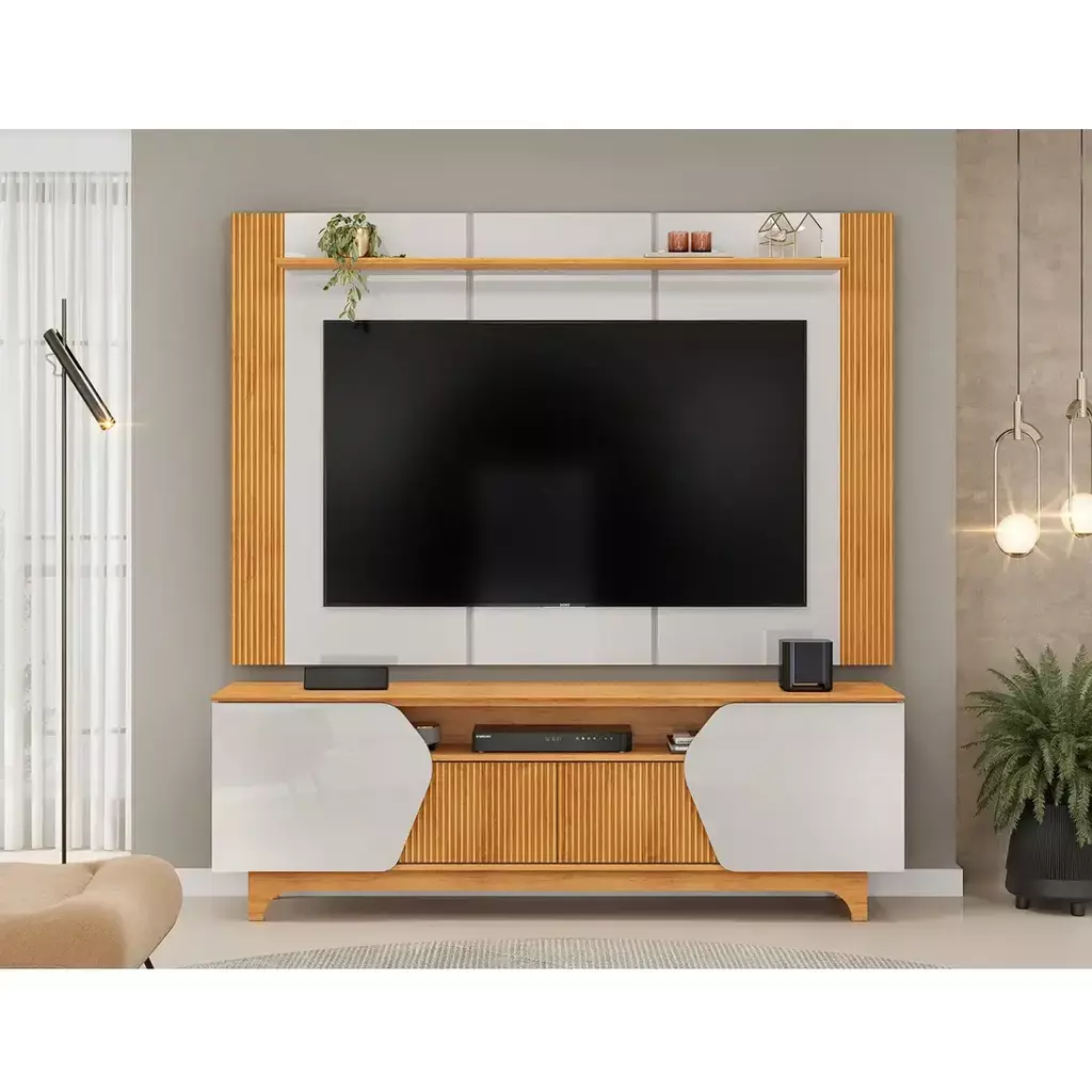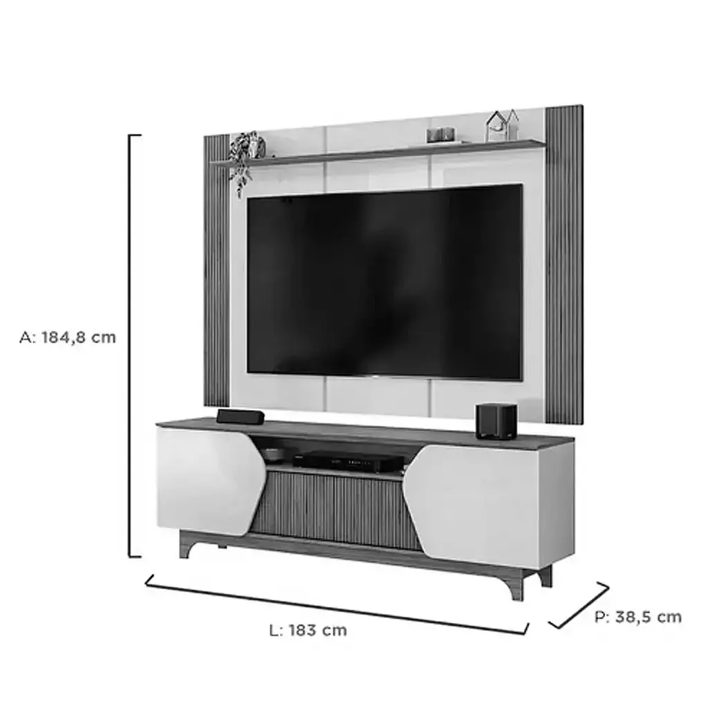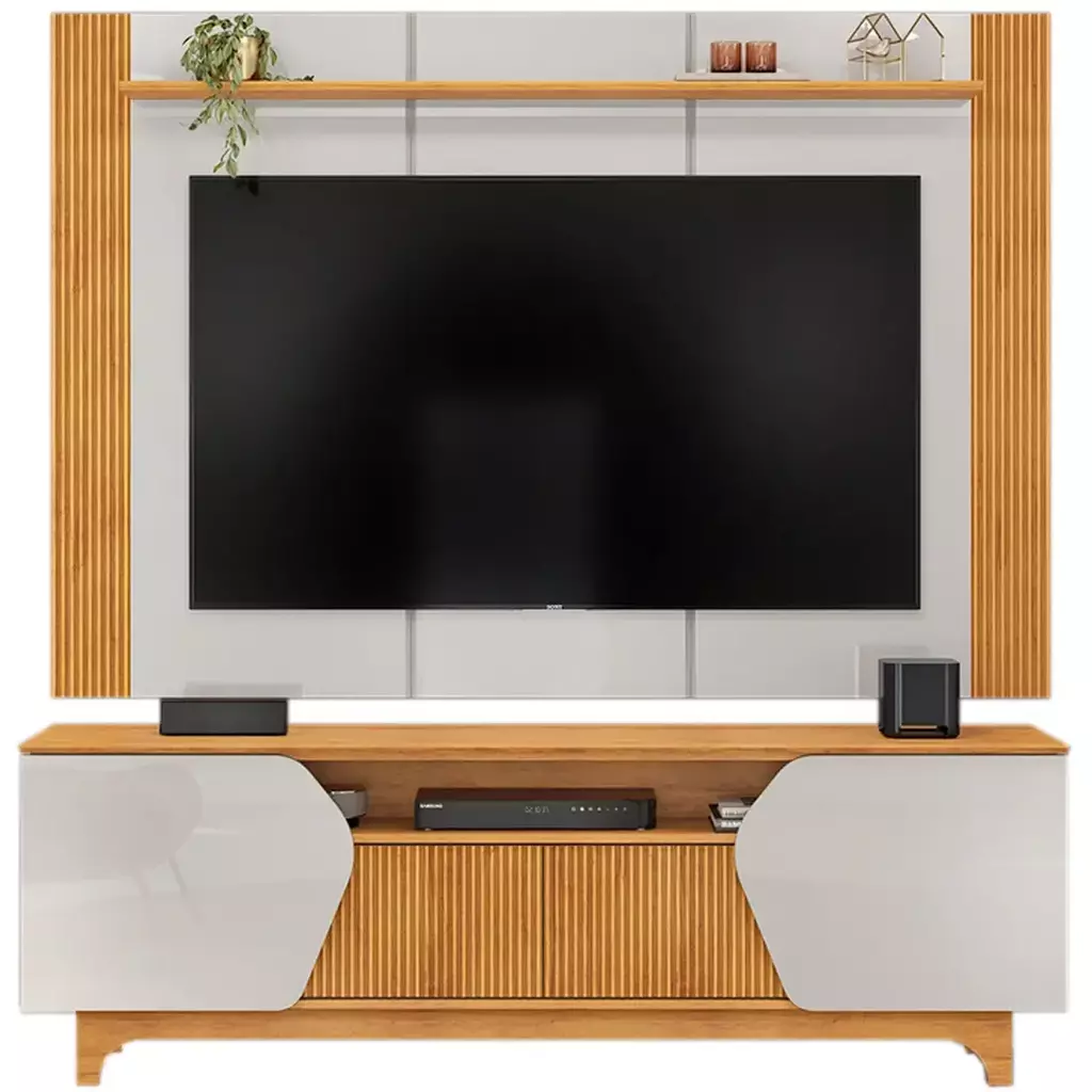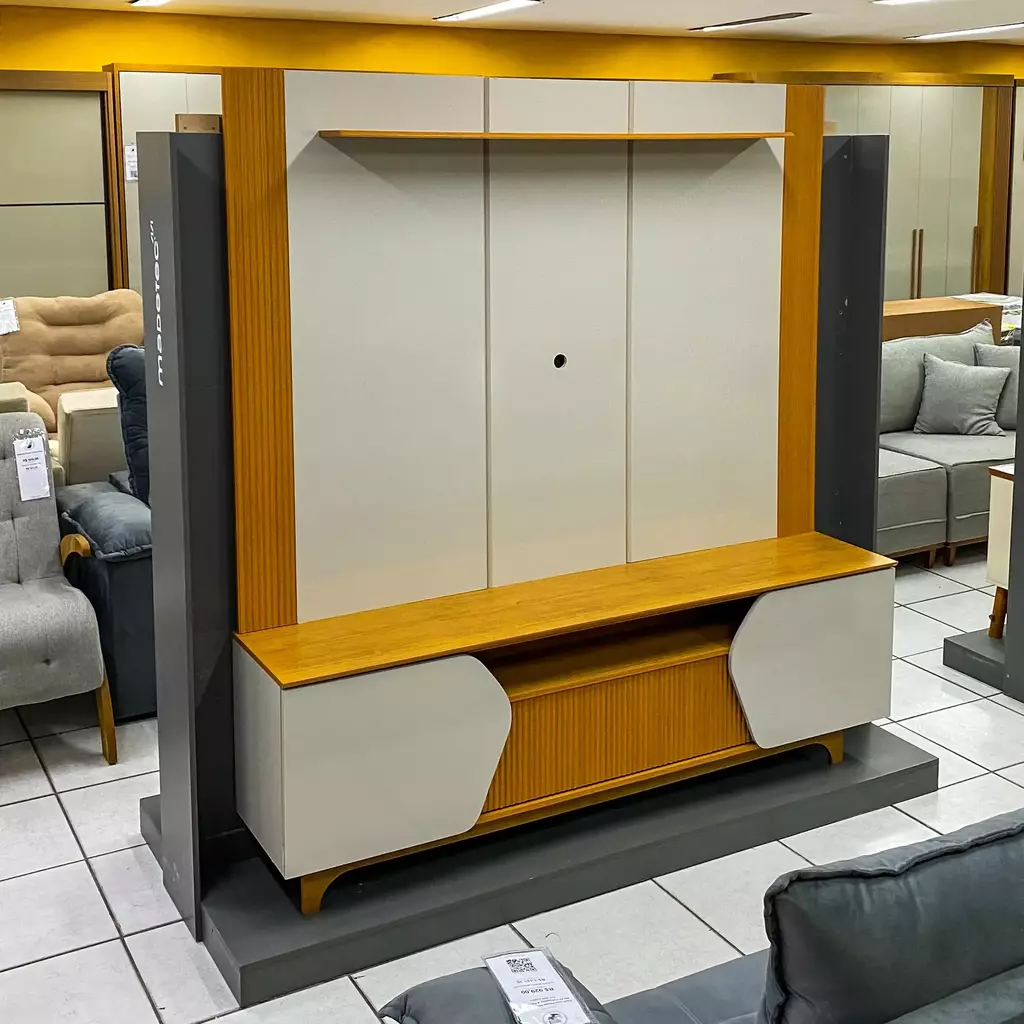 O Home Granada para TV até 60” oferece praticidade e um visual moderno para a sala de estar. O painel acomoda TVs de até 60 polegadas e ajuda a manter os cabos organizados, enquanto o rack com quatro portas proporciona ótimo espaço interno para guardar eletrônicos e objetos do dia a dia. Uma opção funcional e elegante para completar o ambiente.