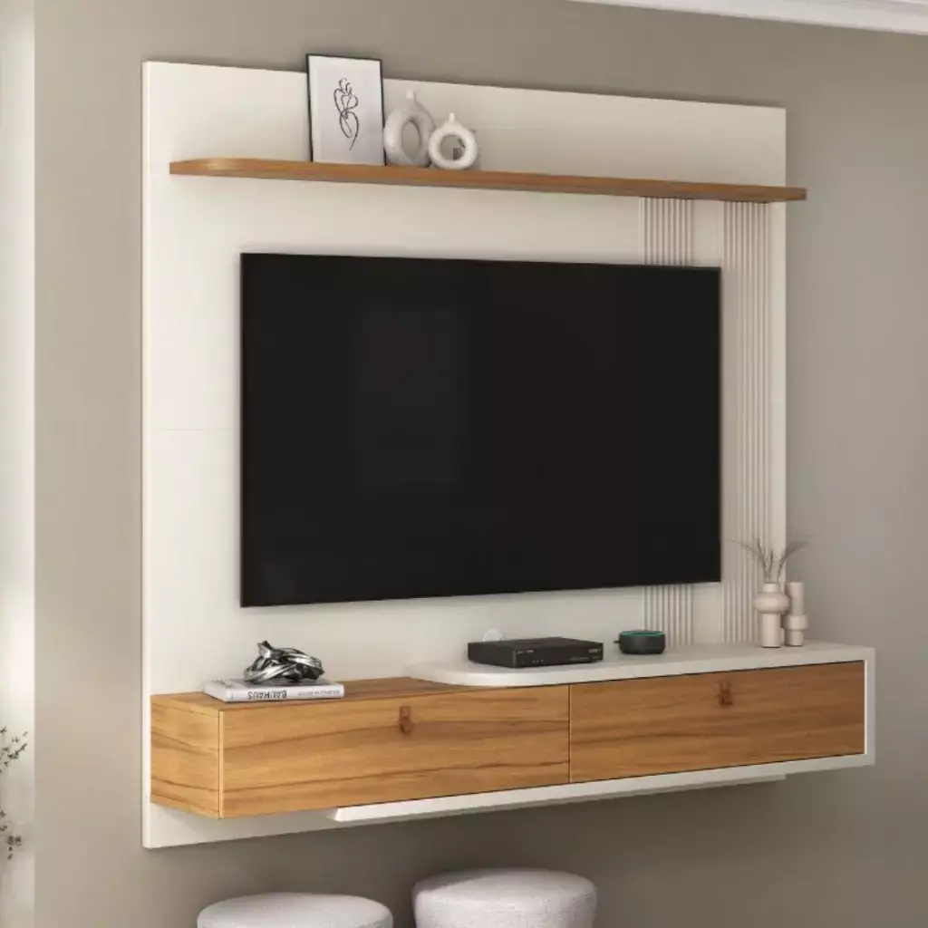 Com estrutura em MDP de alta qualidade e acabamento em pintura UV, o Painel Lara garante durabilidade e resistência no uso diário. Possui nicho inferior espaçoso para aparelhos eletrônicos, além de prateleiras decorativas que permitem organizar objetos e adornos com muito estilo.