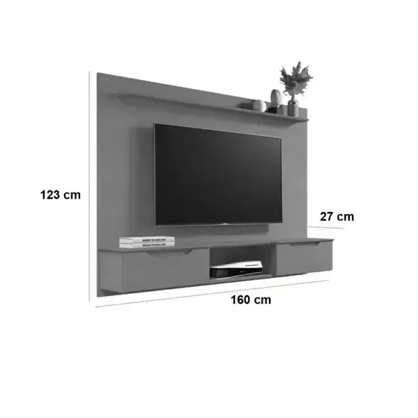 O Painel Macau para TV até 65" - 1,60 m foi desenvolvido para trazer modernidade, organização e sofisticação à sua sala. Seu design conta com portas basculantes, prateleira funcional e acabamentos laqueados que elevam o visual do ambiente. É a escolha ideal para quem busca praticidade e estilo no mesmo produto.