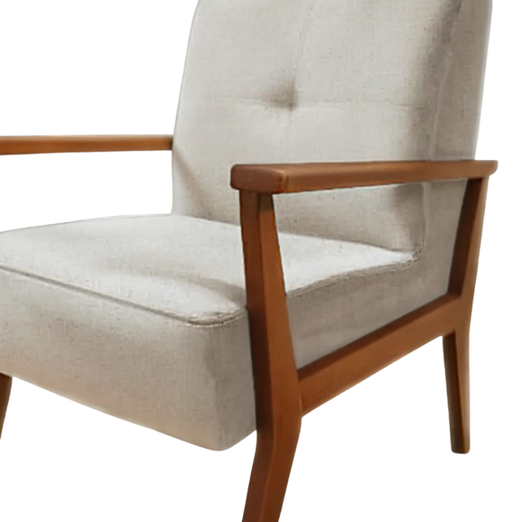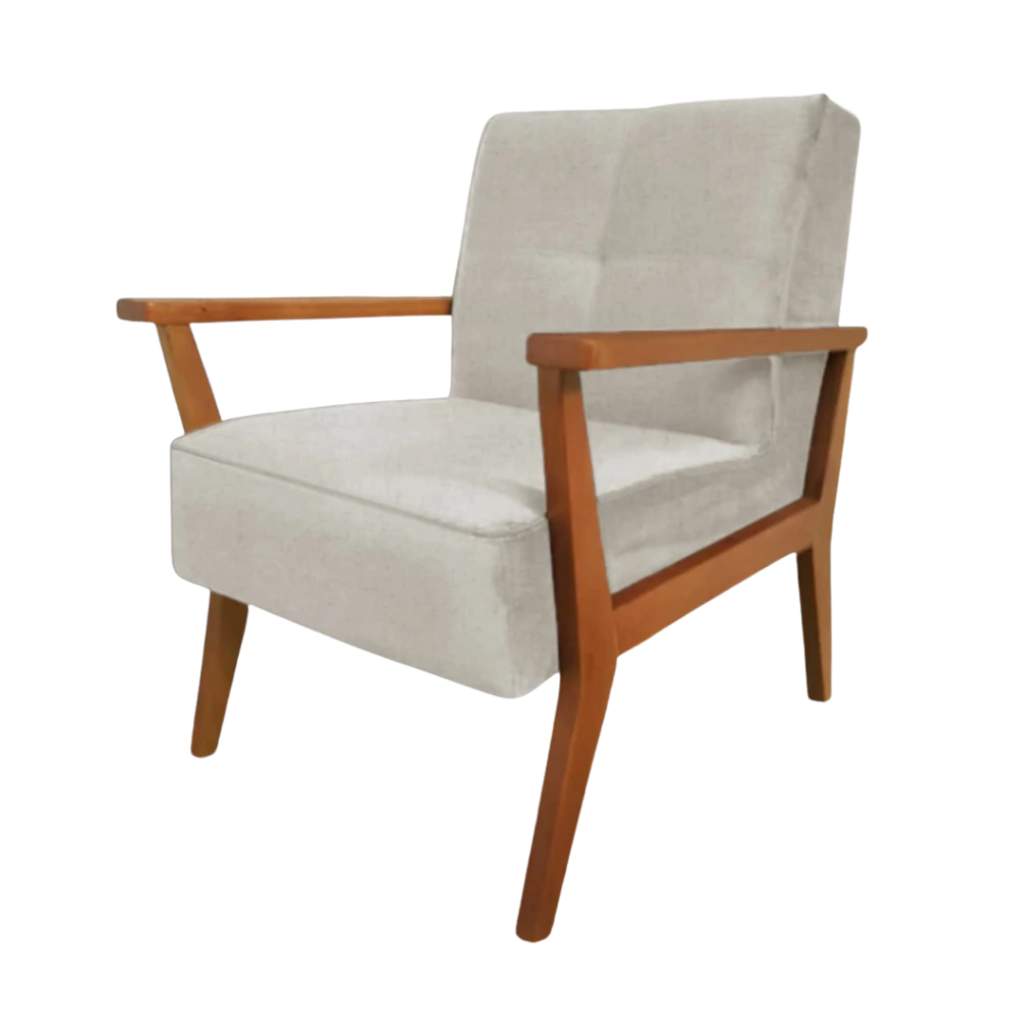 A Poltrona Gaia é compacta e elegante, ideal para complementar salas de estar ou cantos de leitura. O assento combina espuma D33 e percintas elásticas, garantindo conforto e durabilidade. O encosto em espuma D28 oferece apoio ergonômico, enquanto a estrutura em madeira maciça confere resistência e estabilidade.