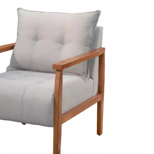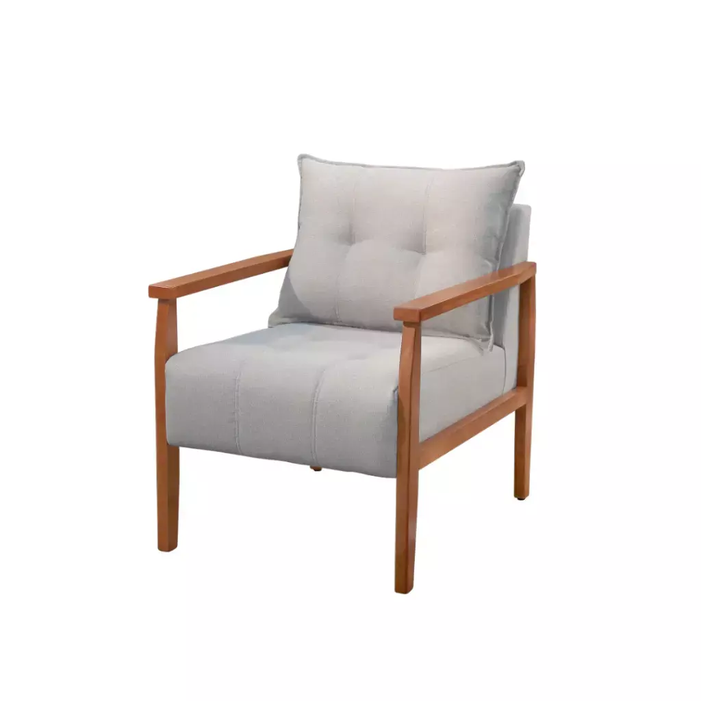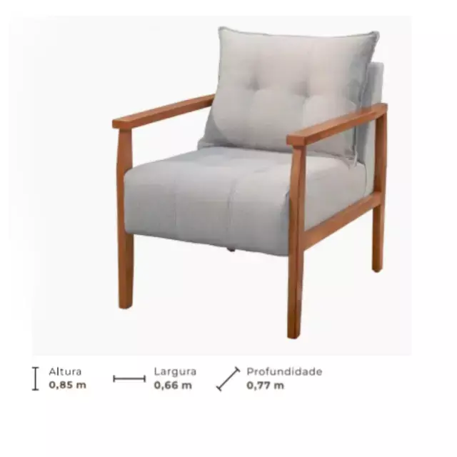 O assento em espuma D33 com percintas elásticas oferece firmeza e conforto na medida certa. Já o encosto conta com almofada solta em fibra de poliéster siliconada, garantindo apoio macio e adaptável ao corpo. A estrutura em madeira maciça reforça a durabilidade da peça, trazendo também um visual elegante ao ambiente.