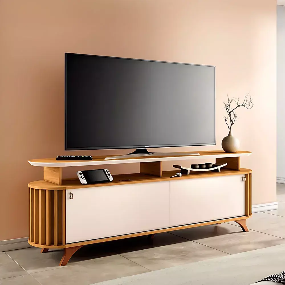O Rack Equador combina elegância, funcionalidade e resistência em um design moderno que valoriza a sala de estar. Ideal para TVs de até 70”, ele traz portas de correr, detalhes ripados e puxadores dourados que acrescentam um toque de sofisticação ao ambiente.