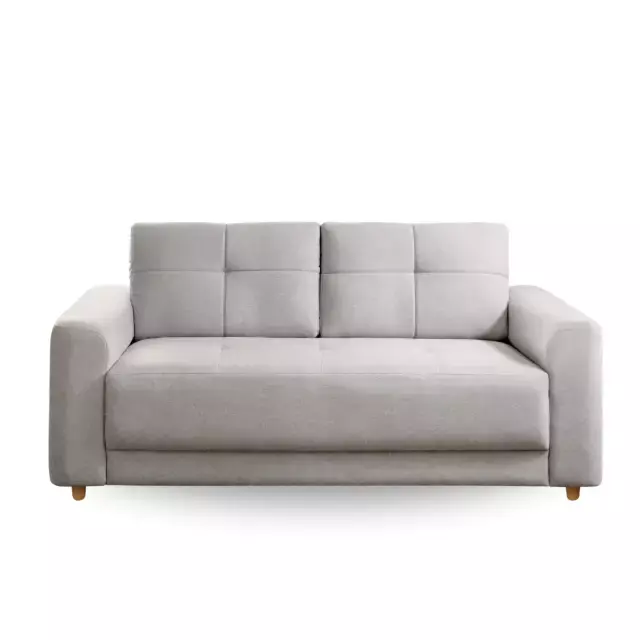 O encosto possui almofadas fixas recheadas com flocos de espuma e uma camada de fibra de poliéster siliconada, proporcionando maciez ao toque e um apoio agradável.