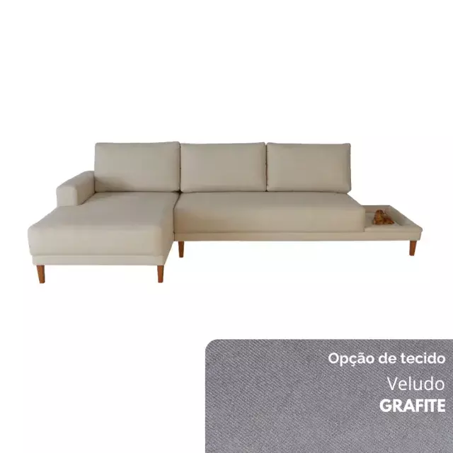 Além disso, a chaise conta com molas espirais que garantem suporte ideal e durabilidade, enquanto o sofá possui molas “S” que oferecem conforto extra ao sentar.