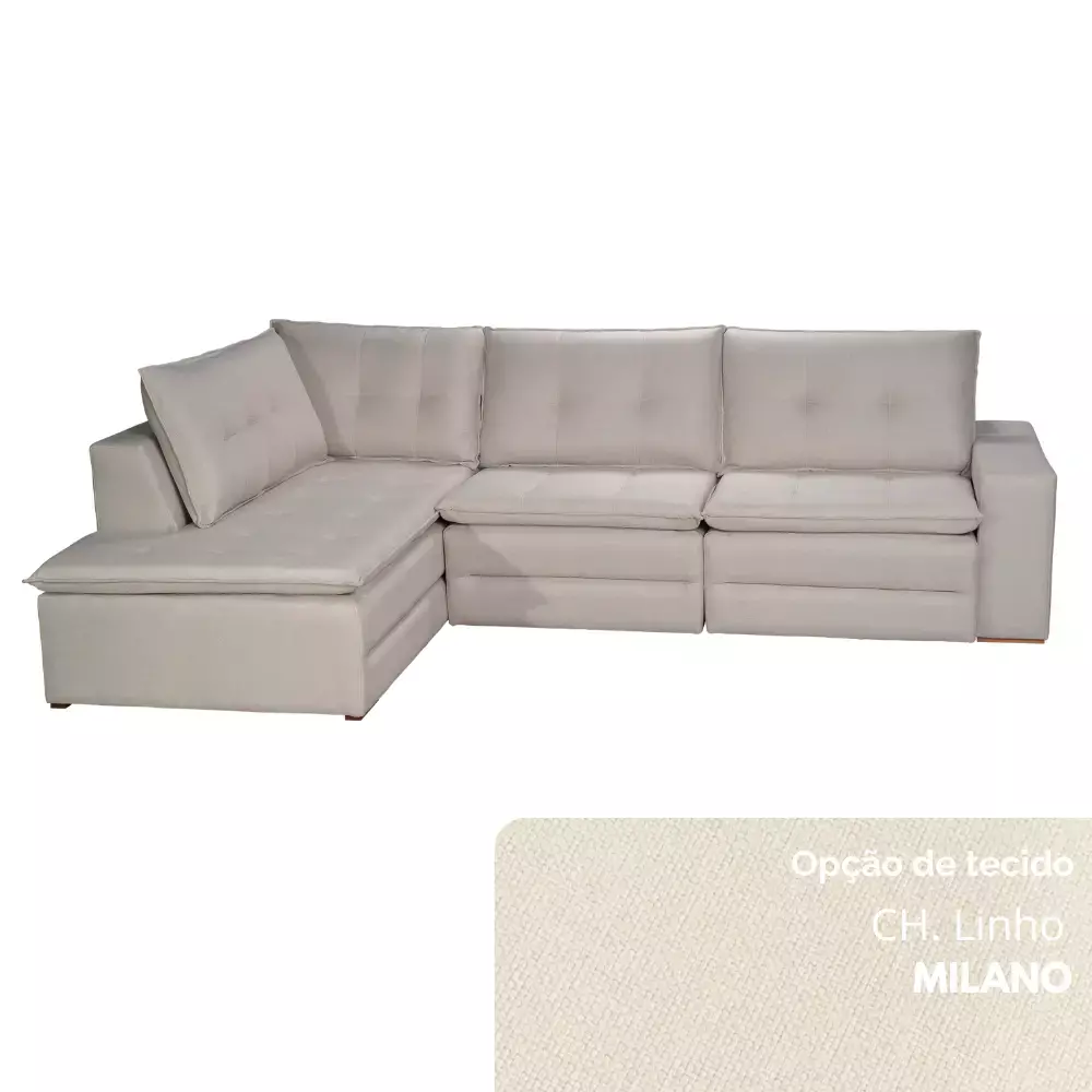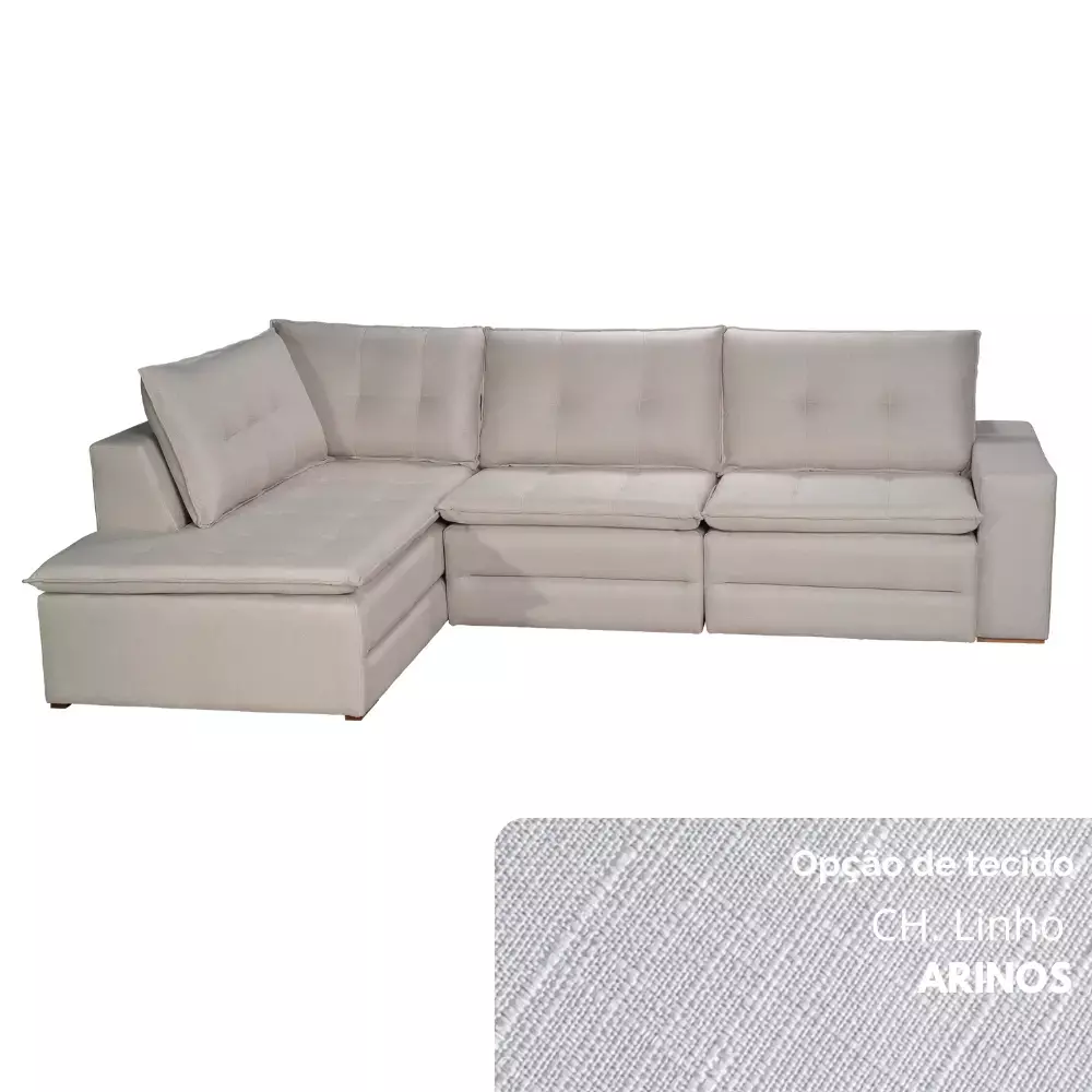 O Sofá de Canto Retrátil Londrina pode ser encomendado com lados invertidos, conforme a necessidade do ambiente. Por padrão, é fabricado com um braço no lado esquerdo (posição sentado).