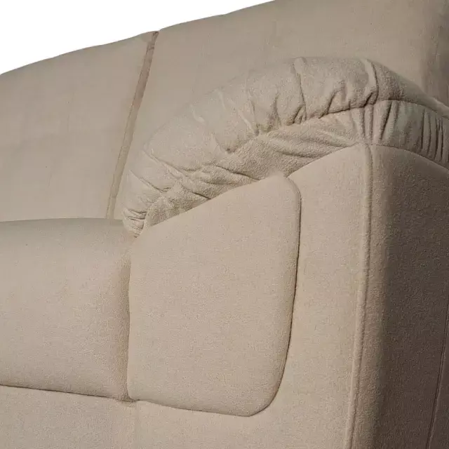Os braços, revestidos com flocos de espuma e camada de fibra de poliéster siliconada, proporcionam toque macio e resistência. Os pés em madeira maciça complementam a estética com um acabamento natural e elegante.