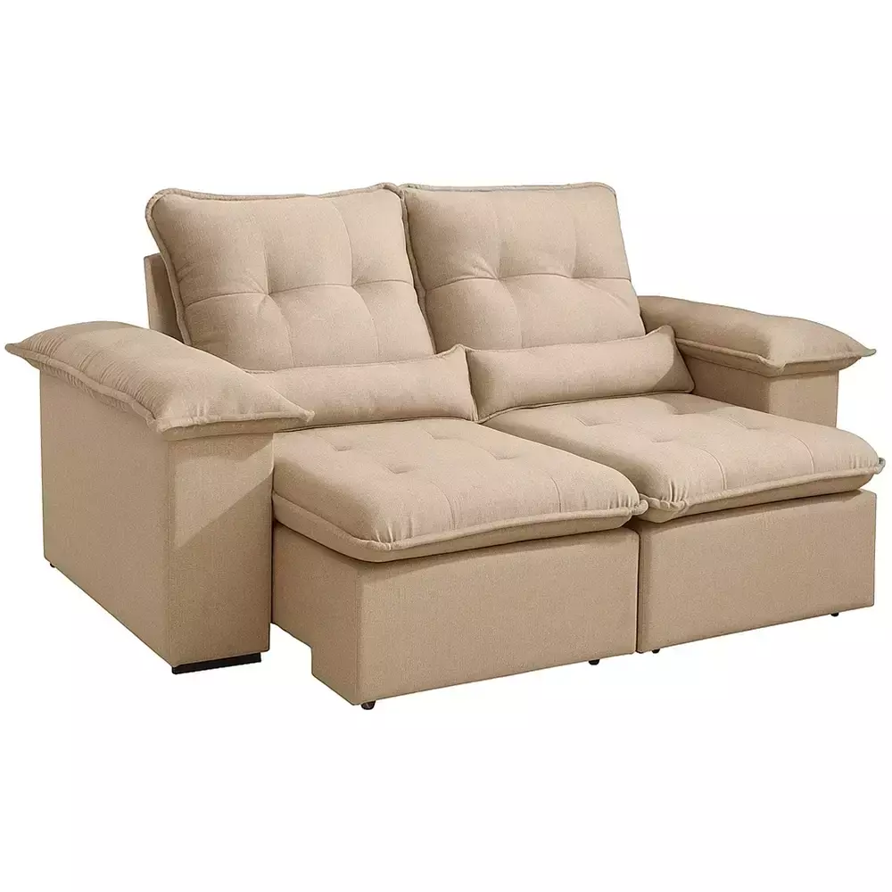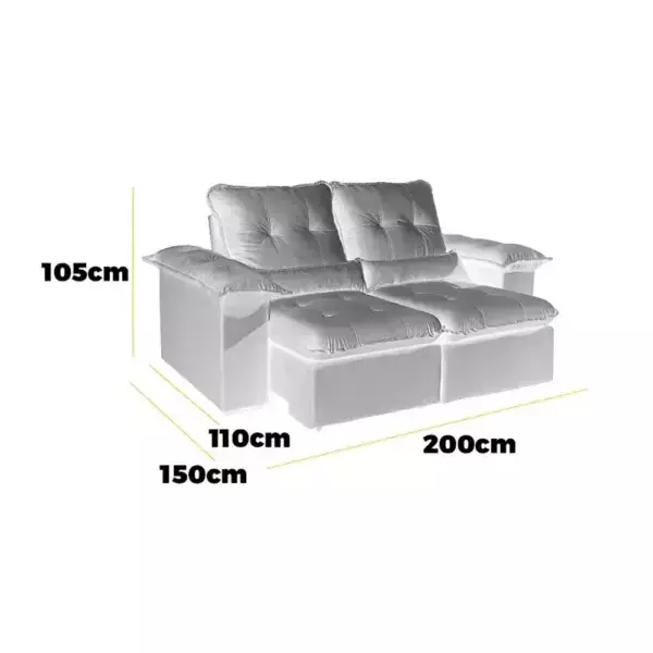 O Sofá Reno Retrátil e Reclinável - 2,00 m combina design moderno, conforto e funcionalidade. Seu assento com molas espirais, percintas elásticas, espuma D28 e pillow top de 15 cm oferece maciez e sustentação na medida certa. O encosto reclinável em até 4 posições, preenchido com fibra siliconada, garante apoio aconchegante para seus momentos de descanso.