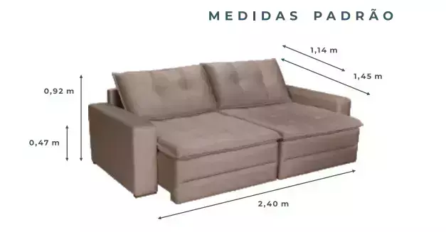 O Sofá Retrátil Cama Madrid — 2,40 m é a combinação perfeita entre estilo, conforto e funcionalidade. Com design contemporâneo e linhas elegantes, transforma a sala em um ambiente versátil: sofá confortável para o dia a dia e cama prática para hóspedes. O sistema retrátil com base reforçada oferece amplo espaço de descanso, enquanto os assentos com núcleo de espuma e opções de camada extra garantem conforto contínuo. O acabamento em tecido resistente e a estrutura sólida completam a peça, tornando-a ideal para quem busca versatilidade sem abrir mão da qualidade.